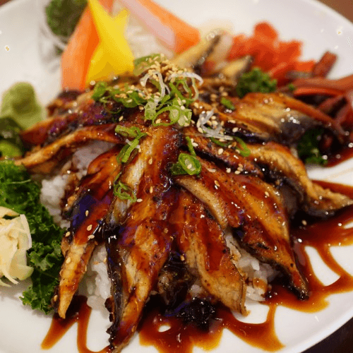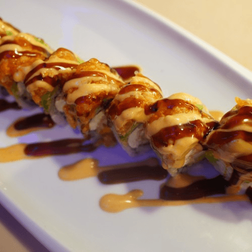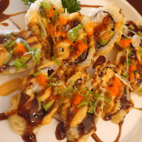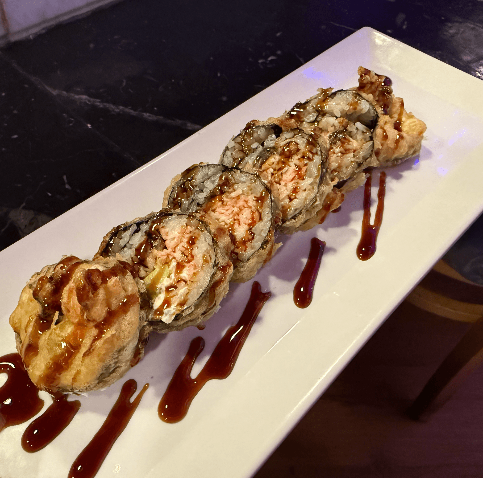 Tuna, salmon, yellowtail, avocado, scallion deep-fried with eel sauce, spicy mayo
