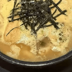 Mushroom soup with deep-fried onions, scallion, and fish cake