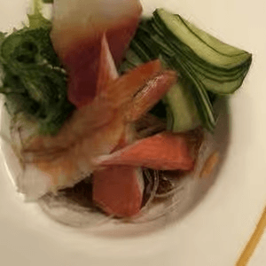 Ebi (shrimp), kani (crab), and tako (octopus) with ponzu sauce