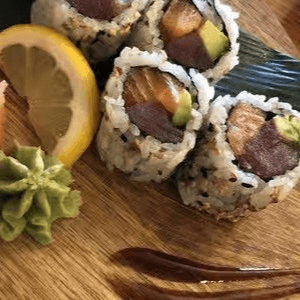Salmon Love Roll in : Spicy salmon, Avocado, Crunch out : Salmon, Ikura Kenny Roll in : Tuna, Salmon, Yellowtail, Avocado, Masago, Crunch out : Avocado