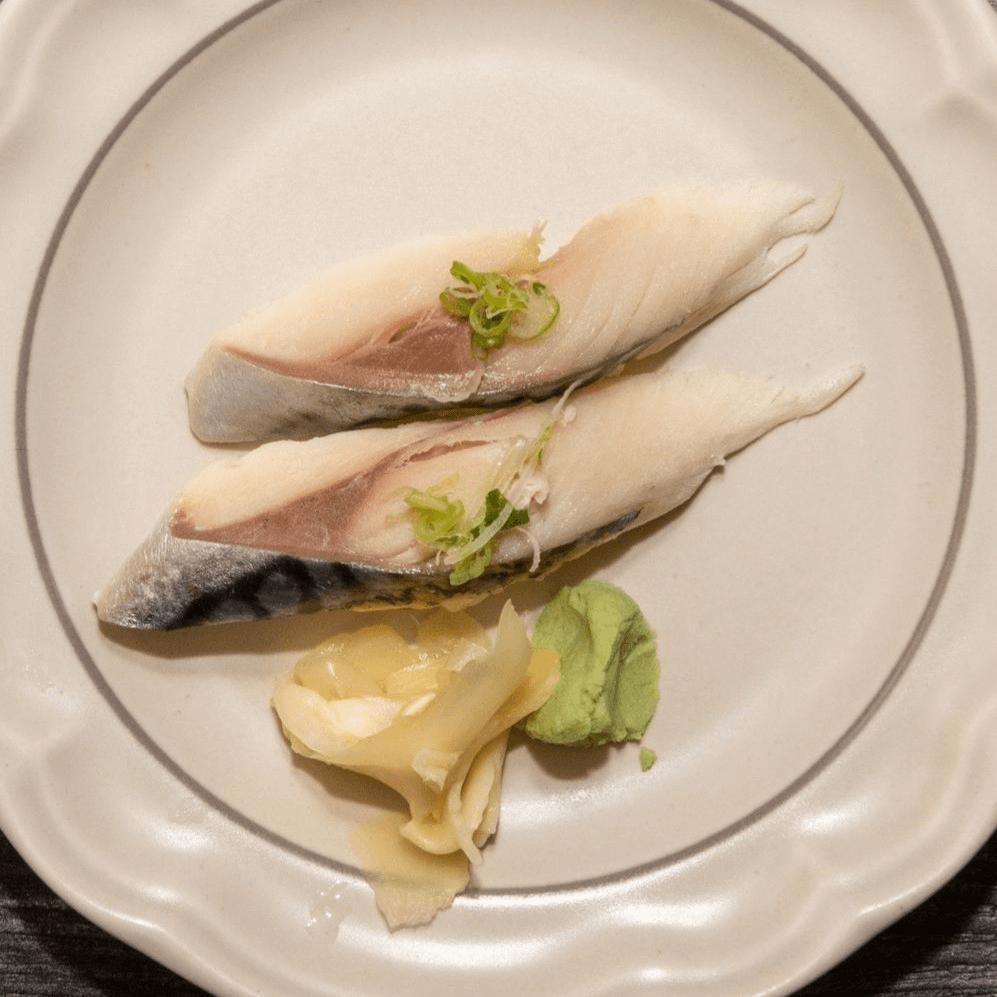 Saba shioyaki, seaweed salad, 3 pieces of sushi, 6 pieces of sashimi, and 6 pieces of California roll
