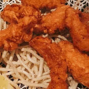 Katsu(Pork or Chicken), shrimp and vegetable tempura, and California roll.