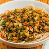 Freshly made daily cold skin noodles, served with a spicy sauce of vinegar, garlic, and chili oil