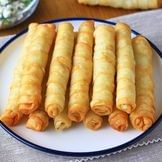 Crispy 4 rolls of phyllo dough filled with feta cheese and fried until golden