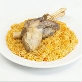 Beef kebab or lamb shank with uyghur pilaf (rice, carrots) & small salad (uyghur plov)