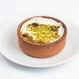 Freshly hand-made thin layers of phyllo pastry filled with crushed pistachios and soaked in sweet syrup. Served with 3 pcs.