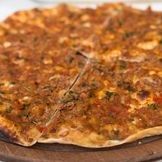 Flatbread topped with Turkish pastrami, sucuk, and mozzarella cheese