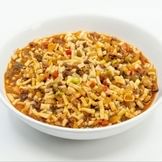 Diced chicken with chili red peppers served with side rice